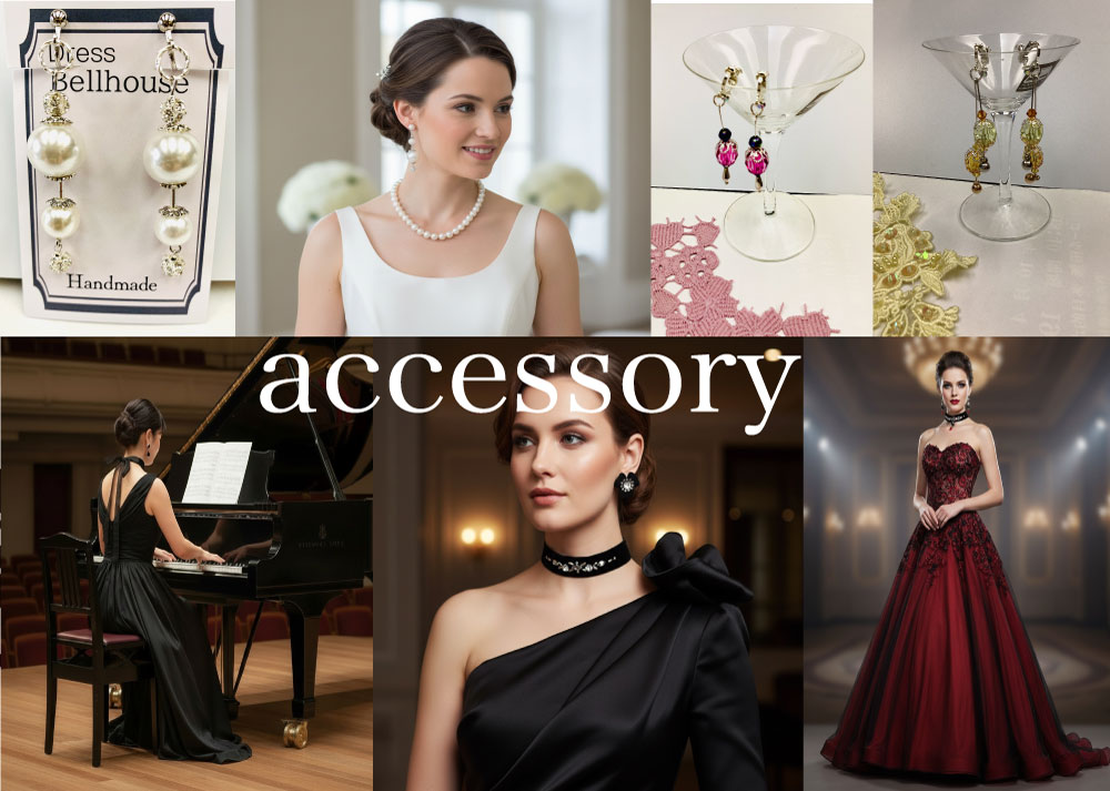 ベルハスでは ドレスに合ったオリジナルのアクセサリー(イヤリング、ネックレスなど)をご提案しています。またイギリス、アメリカから直輸入で素敵なドレスを取り揃えています。
