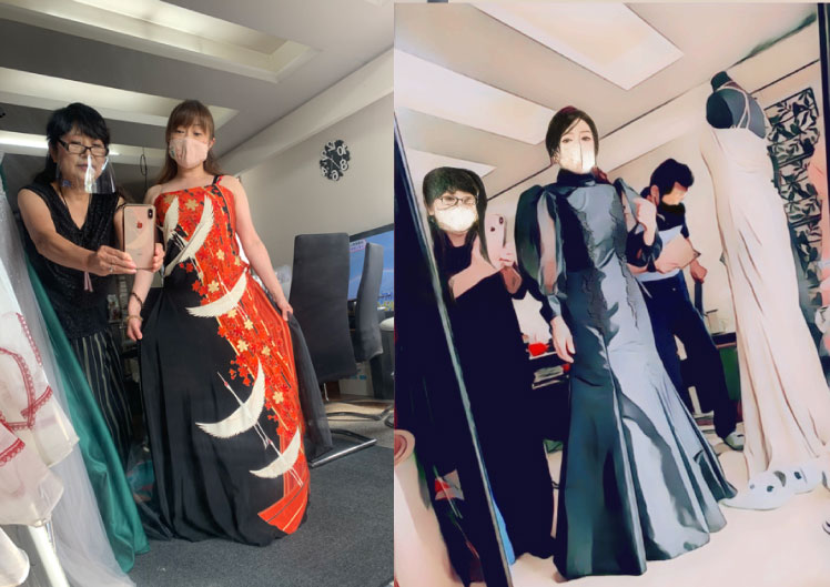 デザインパーツをアレンジしたり、異素材を組み合わせたり、ビーズやスパンコールのボリューム感を増したり、袖付けのご要望にお応えしたりなどデザインイメージをアップさせます。